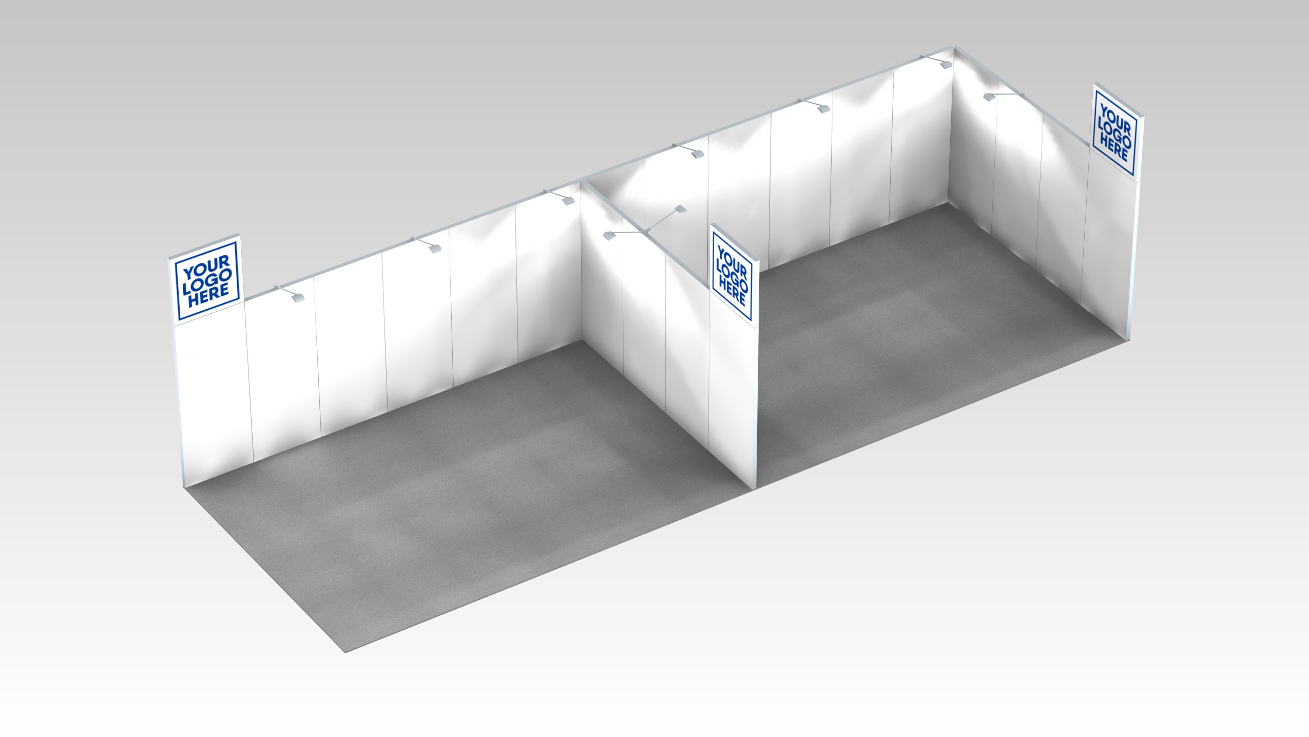 System walls, BeMatrix, b62 frame with Forex, white, height 2,50m, carpet quality reps (grey), 1x long-arm spotlight per each full 3m³ stand space, stand fascia top: white (100cm high, 100cm wide), incl. inscription up to 15 letters, foil plot black (logo print at extra charge), 1x 3-way socket in stand corner. (booking of a power connection is mandatory).