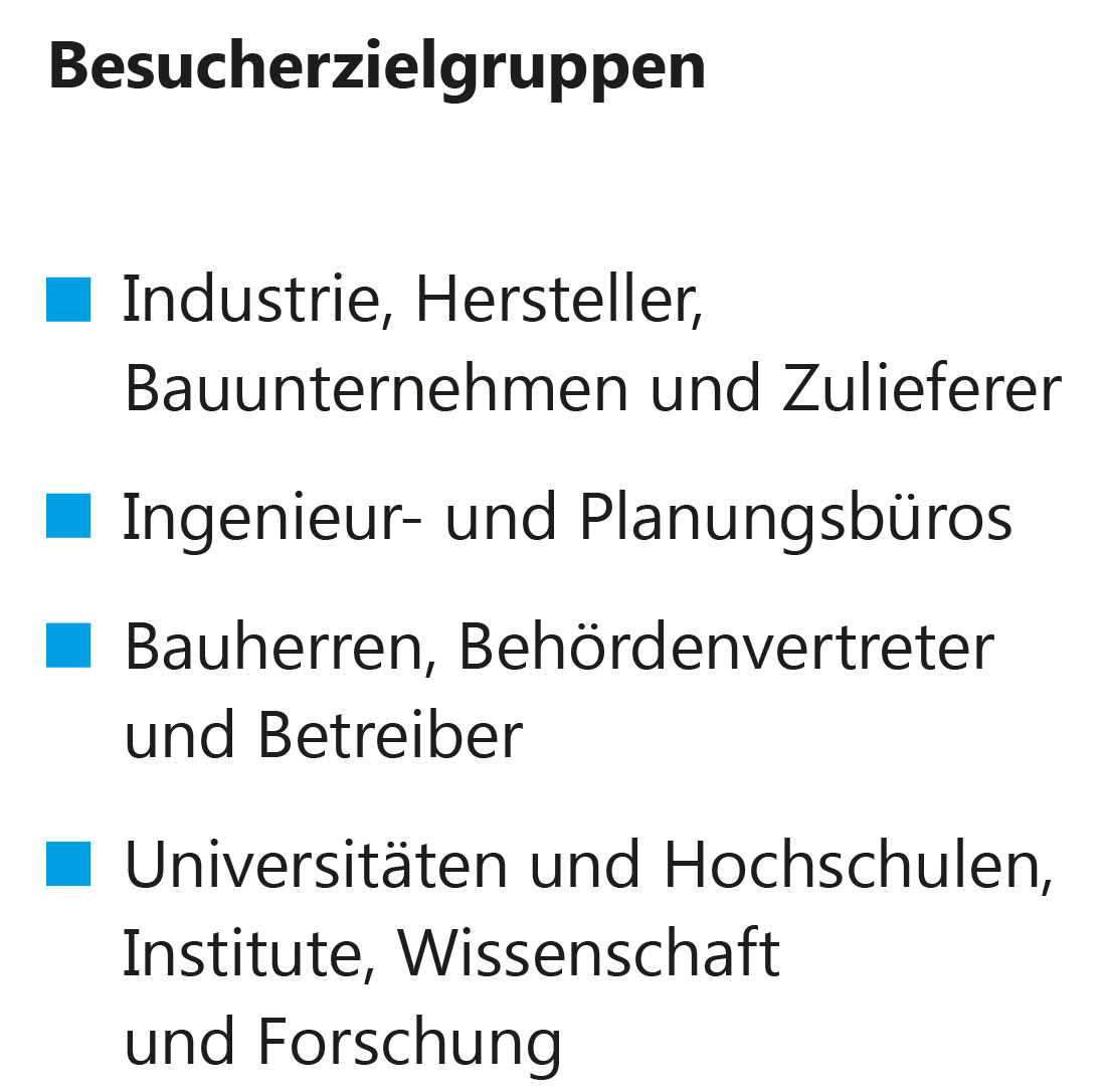 Die STUVA-Tagung und STUVA-Expo hat sich über Jahre als eines der wichtigsten internationalen Foren für Tunnel und Infrastruktur etabliert. Dafür sprechen schon allein die Fakten: 2 Tage mit mehr als 60 Fachvorträgen (mit Simultanübersetzung deutsch/englisch und englisch/deutsch), mehr als 2.000 Tagungsteilnehmer, mehr als 900 registrierte Fachbesucher, 3.000 Fachleute insgesamt, über 200 Aussteller auf 7.000 Quadratmetern Ausstellungsfläche sowie zahlreiche interessante Fachexkursionen am dritten Veranstaltungstag.